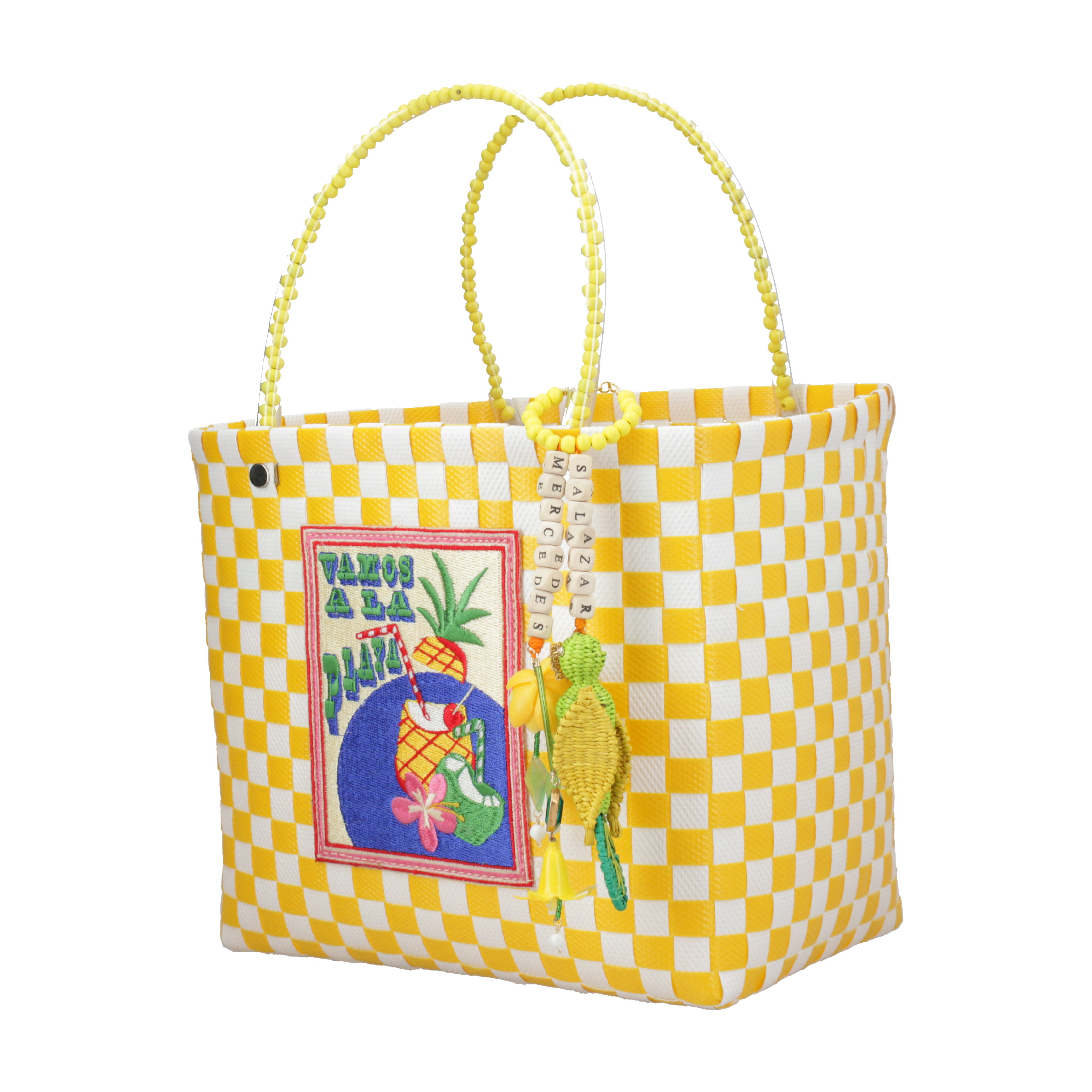 Elegant and self-assured, our Pina Colada Medium size handbag is perfect for those days when you want to look flawless effortlessly. A purse made from recycled plastic and handcrafted in a variety of vibrant colors that perfectly match your style, featuring a raffia handmade keychain. Pair it with your favourite outfit and add a touch of style with your favourite jewellery. Store your treasures in its internal linen pocket.
