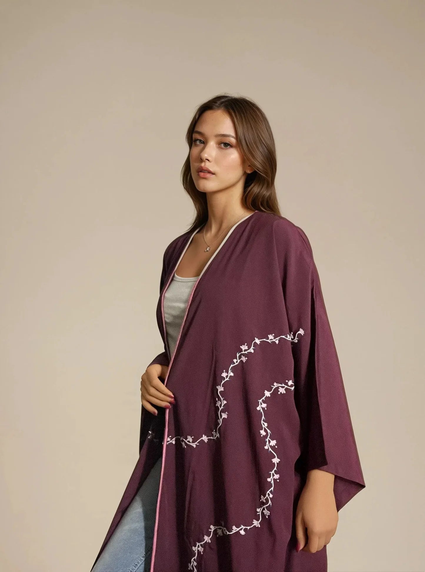 Majestic in name and presence, this embroidered abaya was created as a true statement piece. A design that brings authority and softness together, made to be remembered.