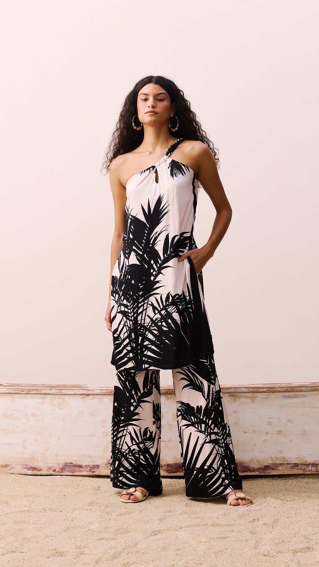 Elegant and sophisticated, it has a wide shape with a high neckline, its highlighted by the one shoulder beads tunnel strap.
