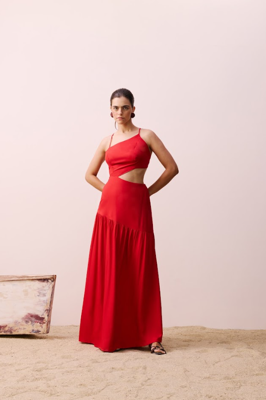 It is a stylish and modern model, with thin straps finished with a cross neckline. In addition, it has a side cutout with enhances the look of this dress.