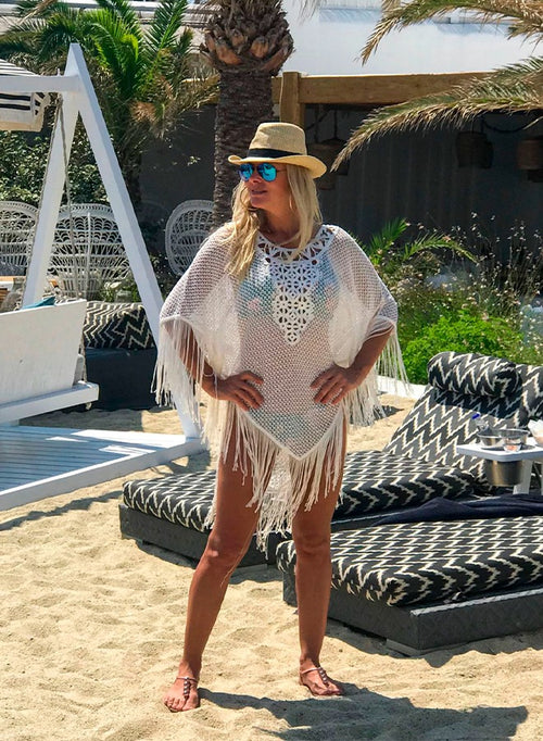 - Short kaftan Cozumel OFF WHITE, loose modeling, made in fine and light lace.