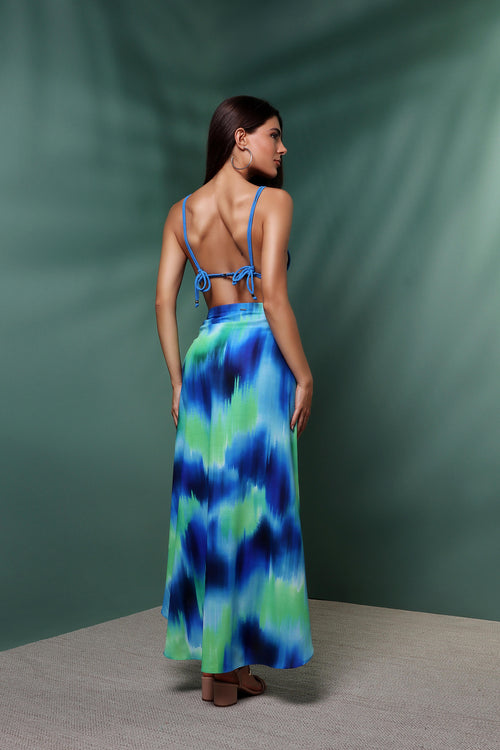 Crossover skirt model at the front, with midi length, shorter at the front.