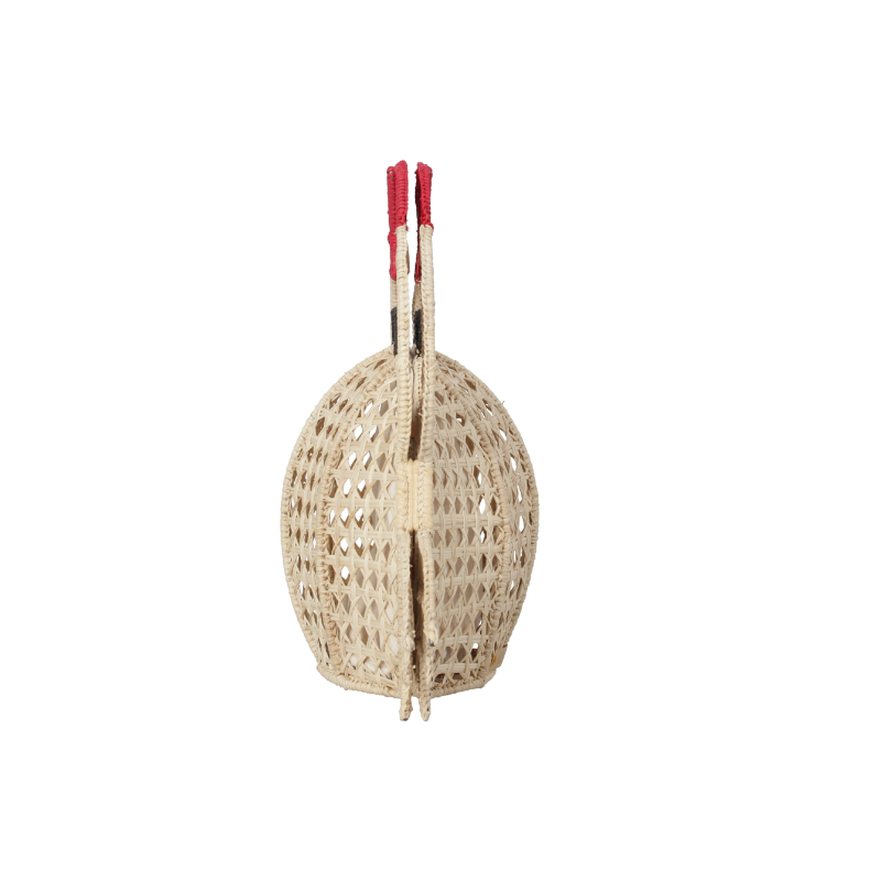 Mercedes Salazar handbag, hand forged in steel and hand woven in natural raffia fiber in the shape of a crab.