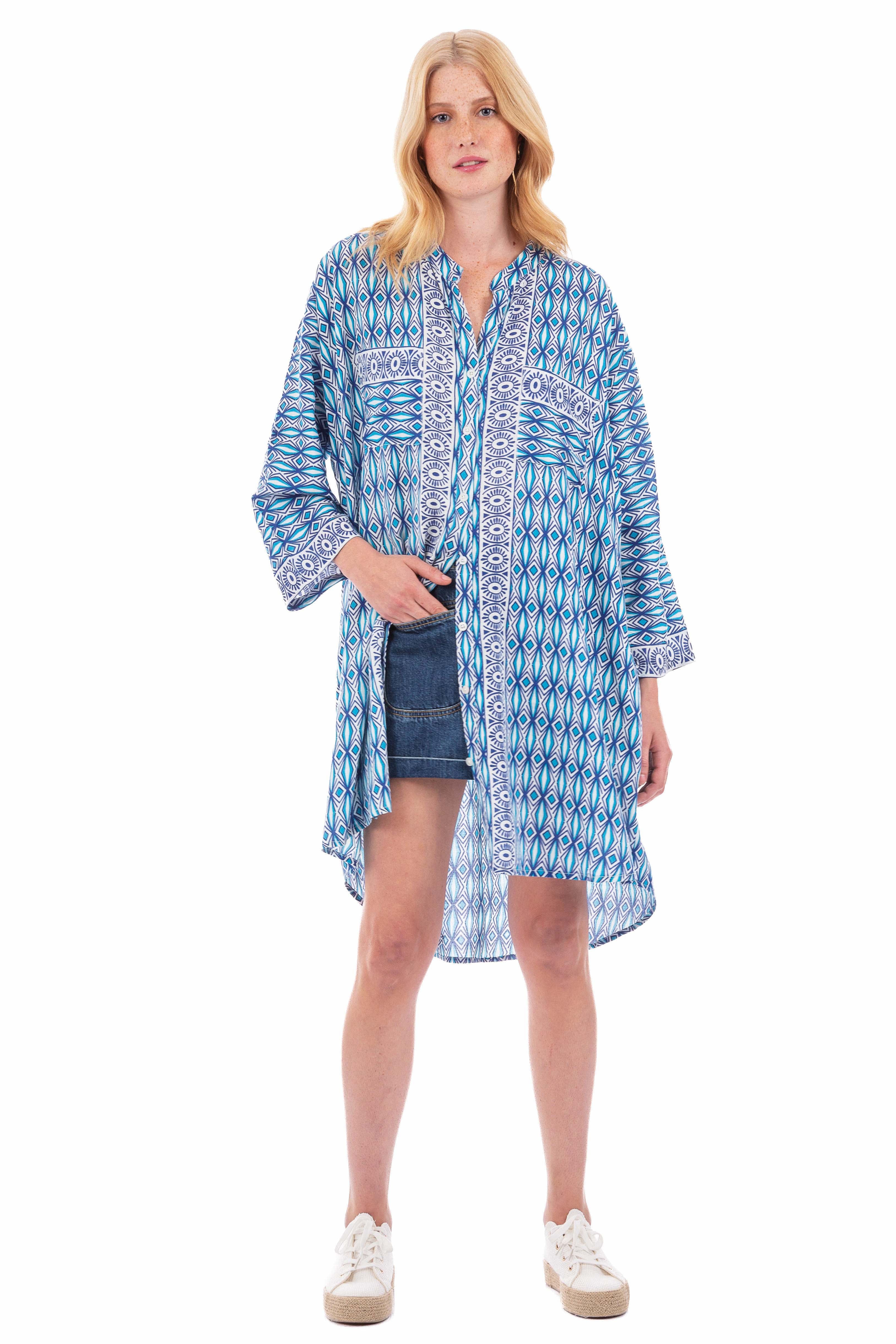 Our Larra Long Shirt is a chic and effortless piece designed for everyday wear. Its elongated silhouette provides relaxed coverage, while the soft, lightweight fabric ensures comfort throughout the day. Featuring a classic button-down front, it can be styled in multiple ways—tucked, layered, or worn loose for a laid-back yet polished look. Perfect for casual outings or paired with tailored pieces, the Althea Long Shirt is a versatile wardrobe essential.