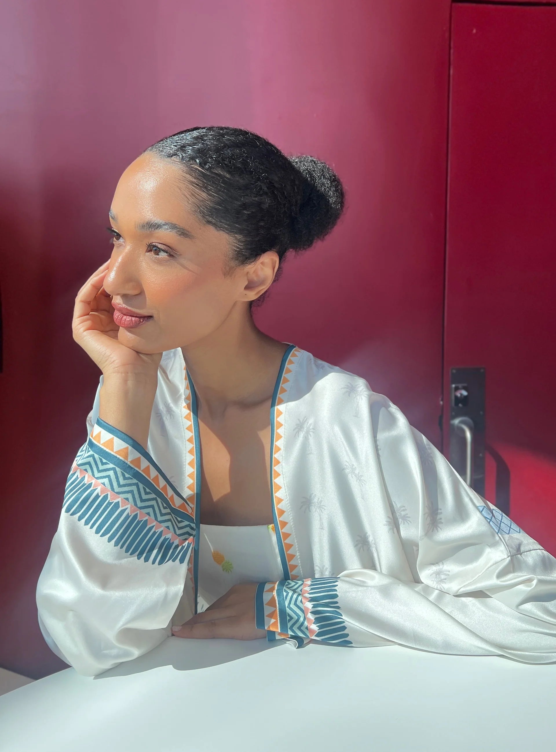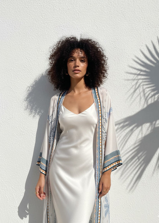 It carries the ease of travel and the stillness of return: light, fluid, and meant to move with breeze, not weight.