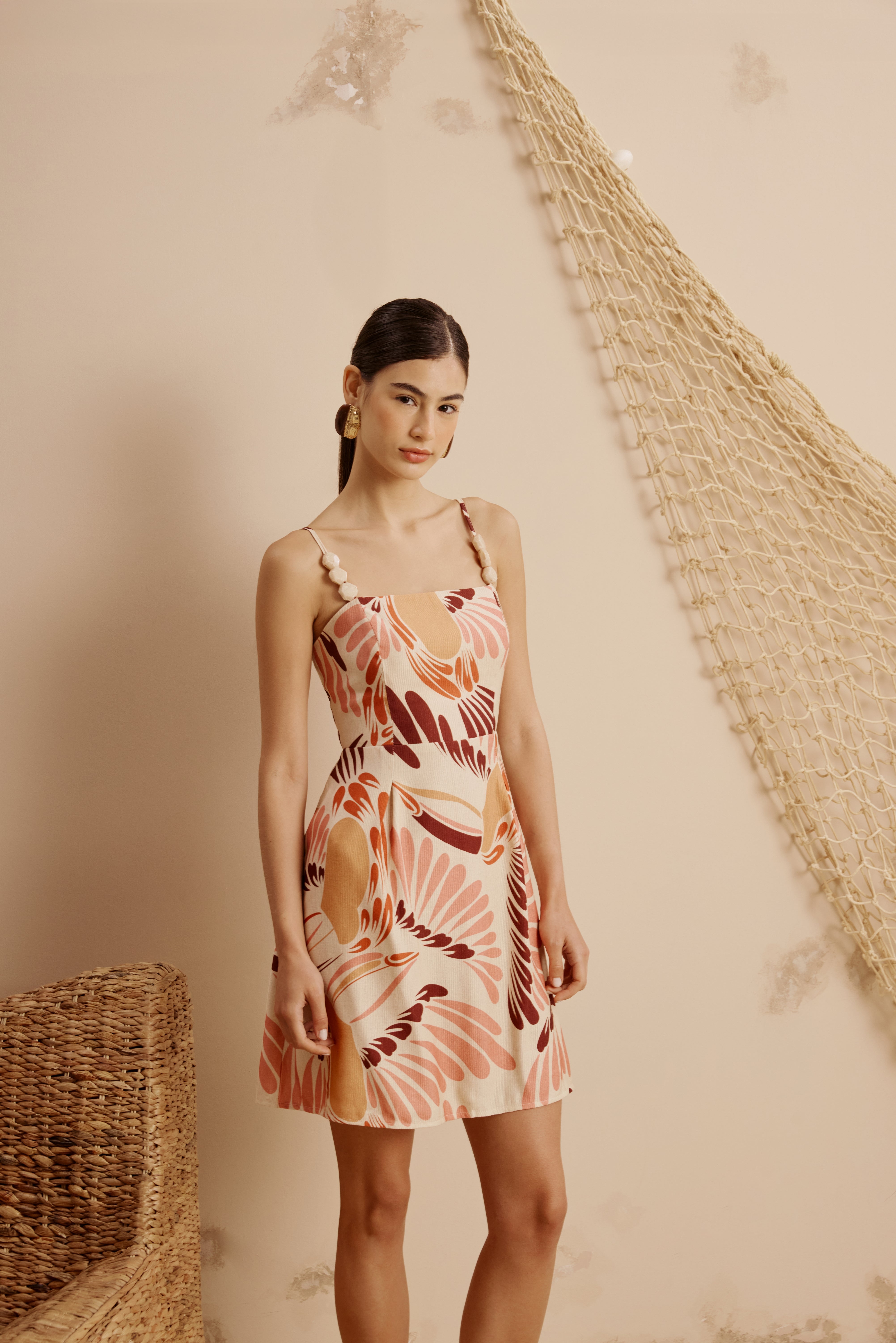 The CaCay Toco Toucan Print Short Dress blends lightness and sophistication with its fluid A-line silhouette, organic nature-inspired print, and thin straps with hexagonal tips. Finished with an adjustable back tie and crafted from a breathable, soft-touch fabric blend, it offers comfort and style for both casual moments and special occasions.