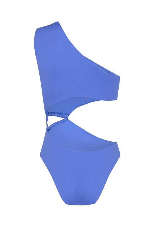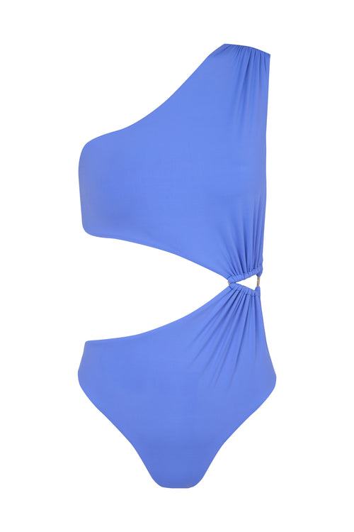 Asymmetrical swimsuit with a draped cutout on the side, finished with an anatomical accessory, a piece that adds gold to your swimwear composition. With embedded seams that guarantee an impeccable and comfortable finish. Made from biodegradable touch lycra with UPF 50+ UV protection, it combines elegance and sustainability.