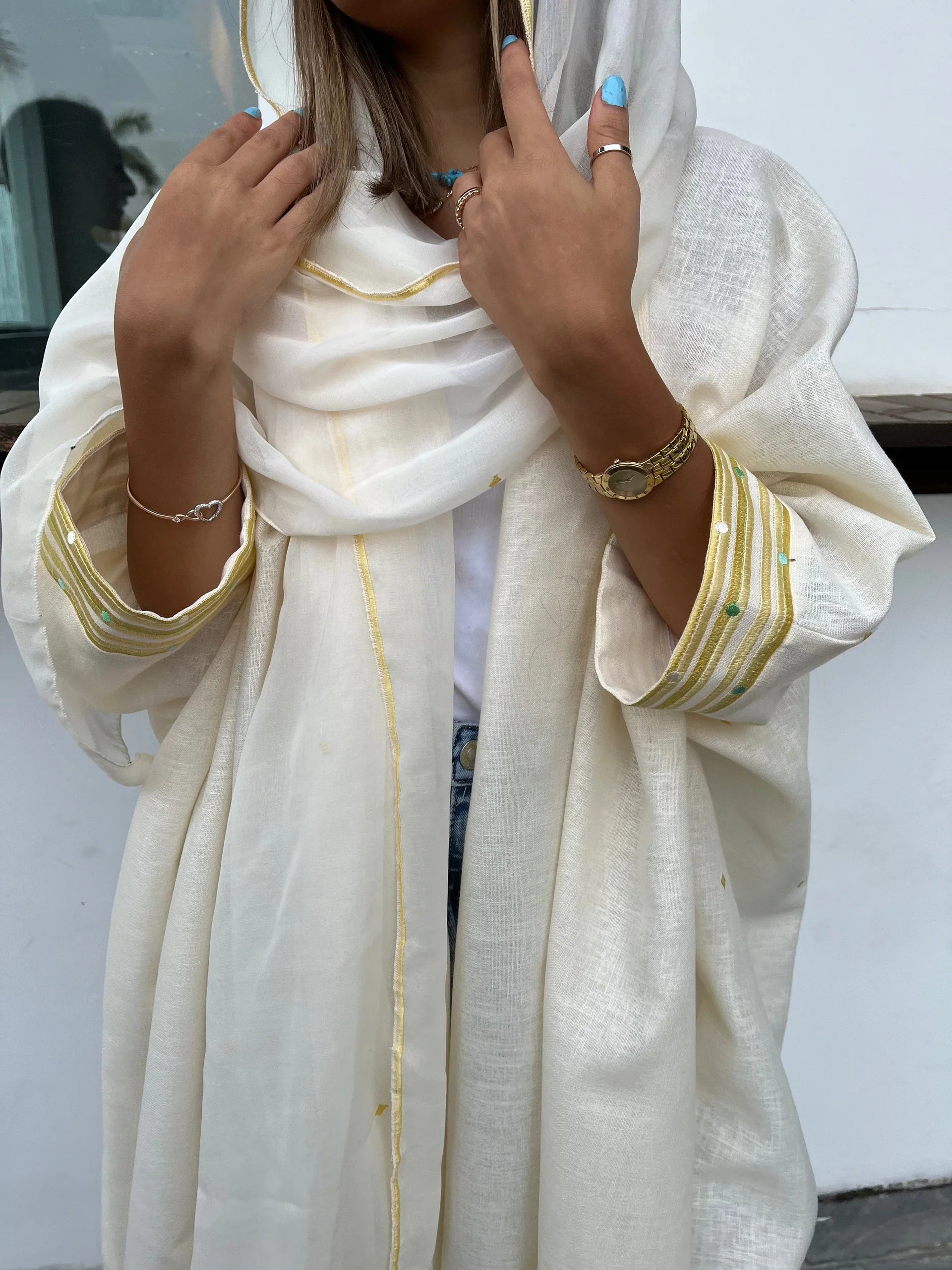 This beautifully crafted scarf is the perfect complement to your abaya, designed for effortless draping and refined elegance. Made from soft, lightweight fabric, it provides comfort and a smooth, flowing silhouette, enhancing any ensemble with understated sophistication.
